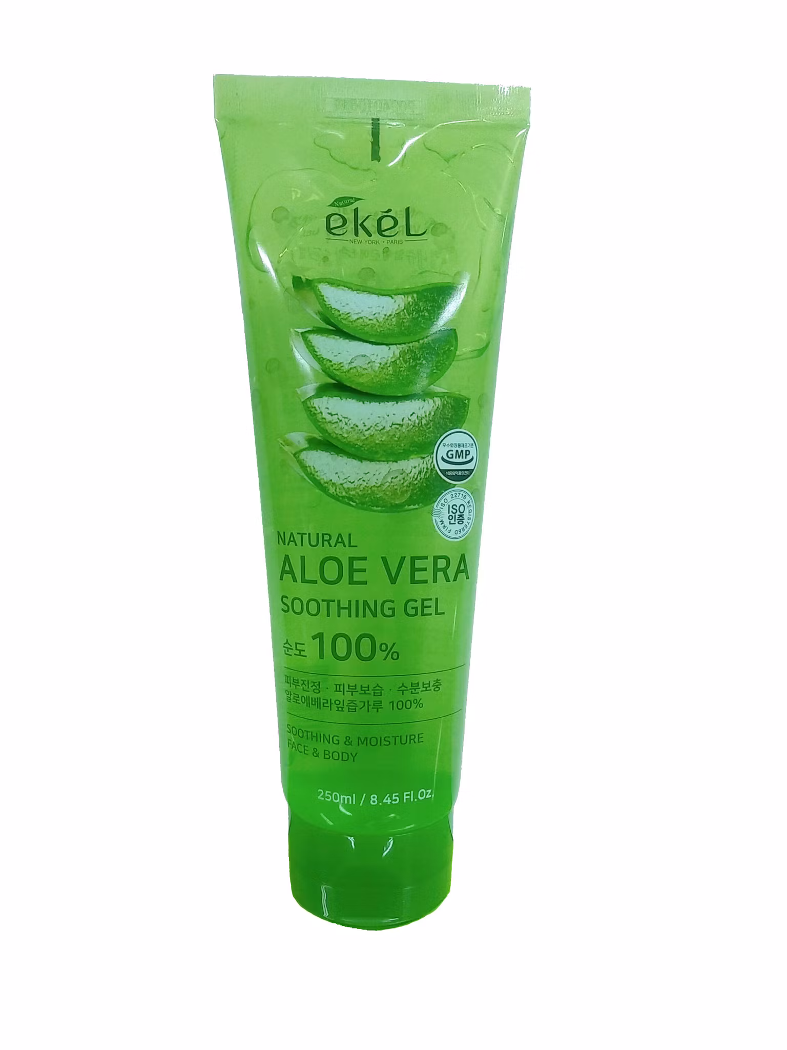 Lugna omedelbart och lugnar solbränna, rodnad och torrhet. Ekel Aloe Vera Soothing Gel innehåller 100 % aloe vera-extrakt.