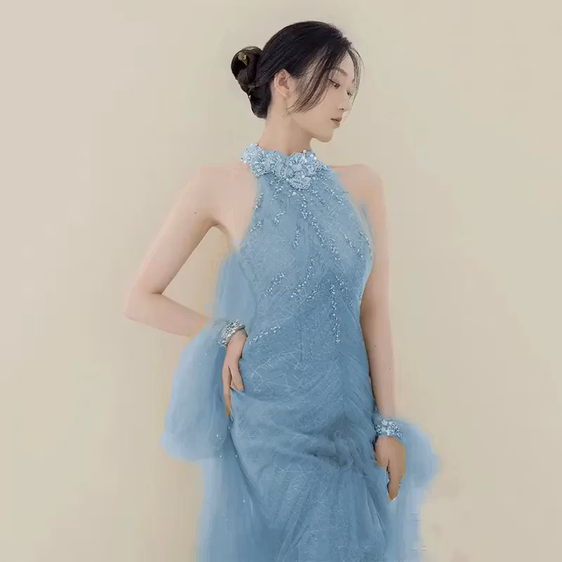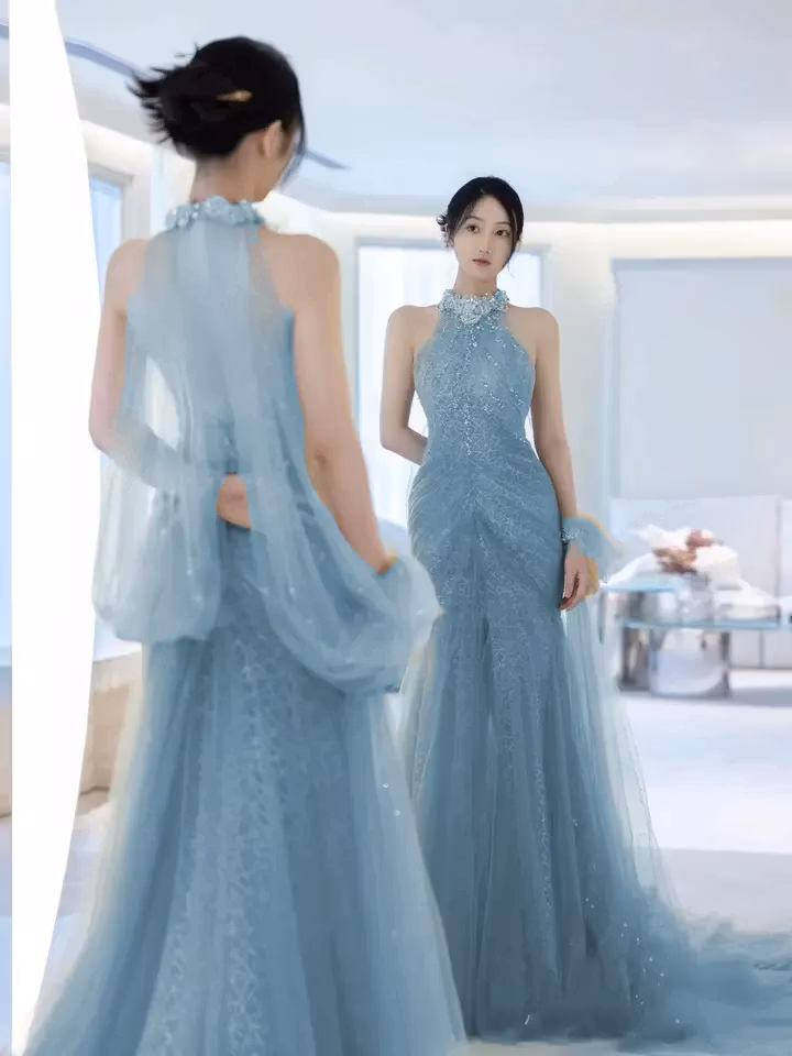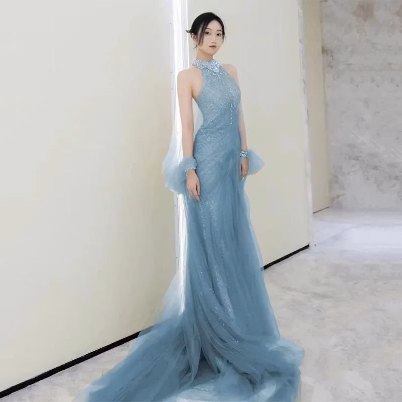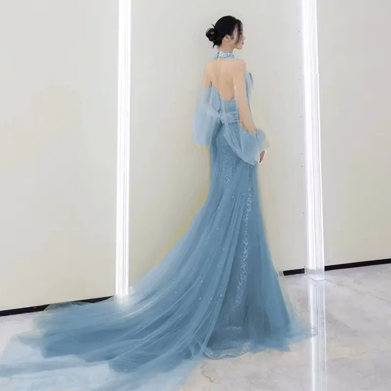Sexig klubb rygglös damklänning Festklänning Blå aftonklänningar