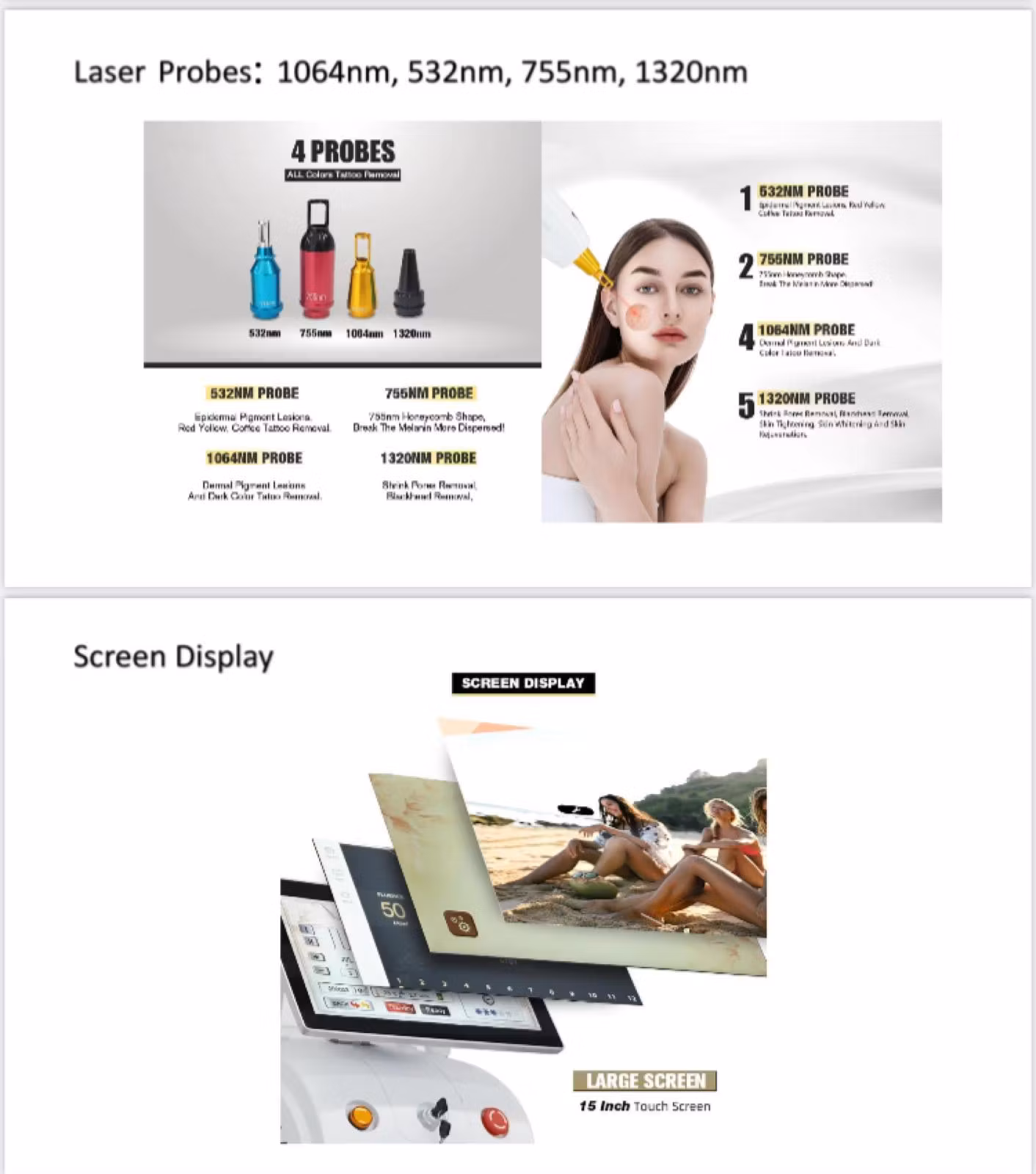1064 nm: ta bort bruna, svarta och andra färgade tatueringar, och den tar också bort svarta och ljusnar mörka fläckar.