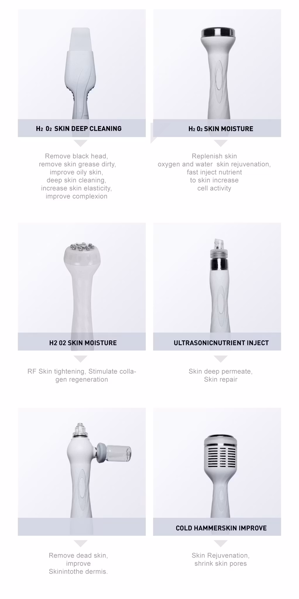 ·Detta är den senaste 7 i 1 ansiktshudvårdsmaskinen som använder h2 o2-generatorn gör det renade vattnet till väte- och syrejoner vatten, pormask mikrodermabrasionsmaskin, hudens yta kan producera H2-molekyler, så att vattenmolekylens celler snabbt kan penetrera dermis. För att uppnå effekten av hudföryngring och blekning, ge dig ett fräscht ansikte.