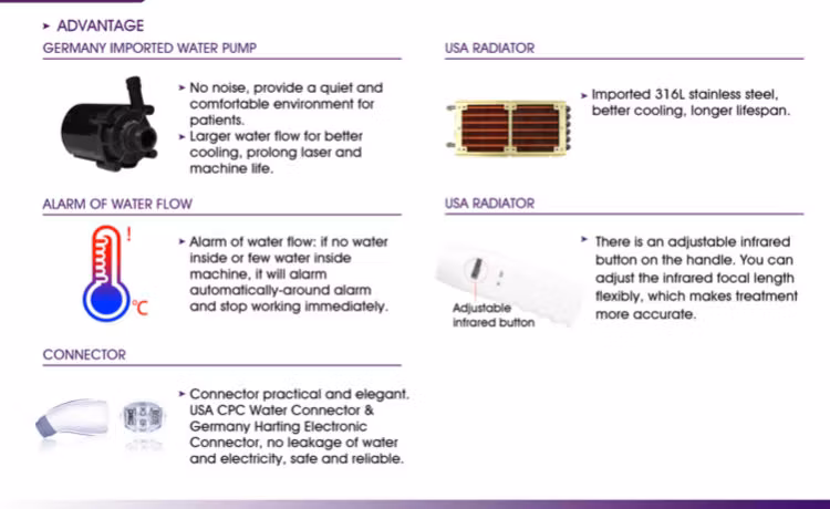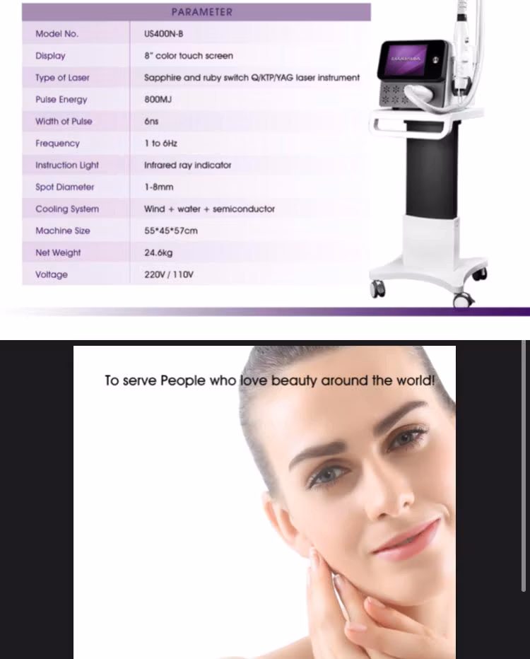 Picosecond lasermaskin använder en unik våglängd av ljus och en specialiserad lins för att omvandla laserenergi till mjukt tryck. Detta tryck klämmer ihop cellerna och aktiverar de naturliga cellsignaleringsprocesserna som skapar nytt kollagen och elastin. Picosecond laser kommer att minimera biverkningarna av termisk effekt, utan att bränna eller skada huden, kan uppnå målet att nästan lösa alla typer av pigmentfläckar, är bättre än traditionell laser spot whitening effekt.