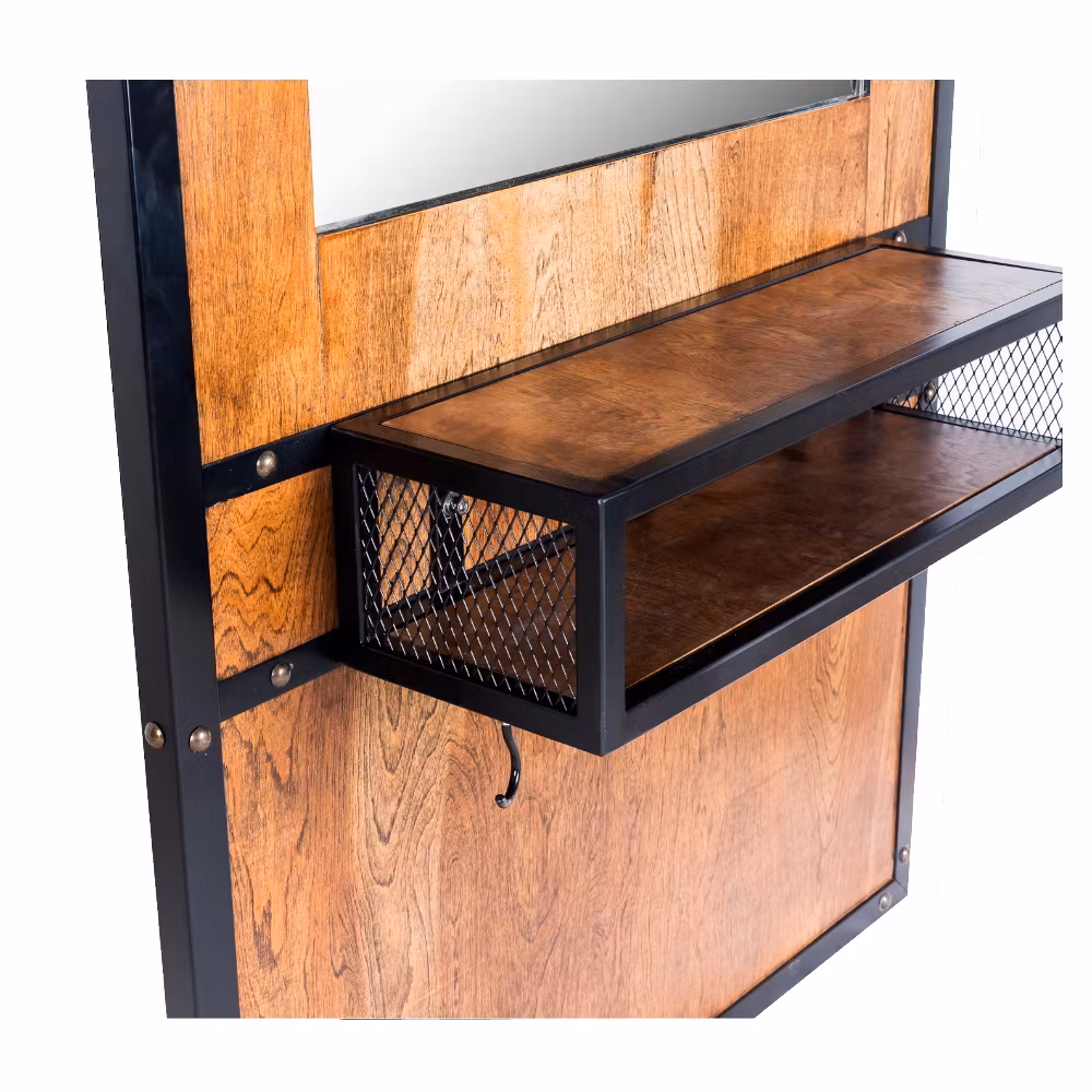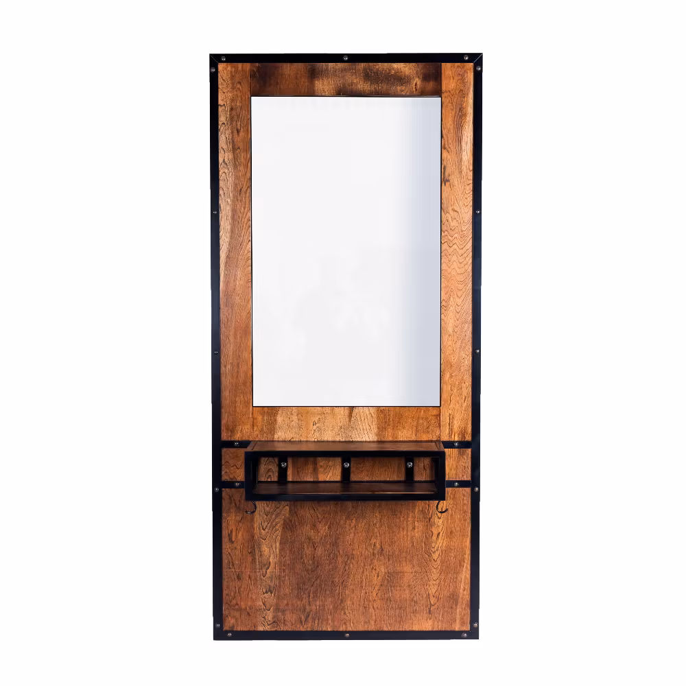 Påklädningsspegel med polerad kant. Erbjuder praktiska tack vare de 2 maskinhållande krokarna. Designad för att erbjuda en fräsch, elegant och industriell look.