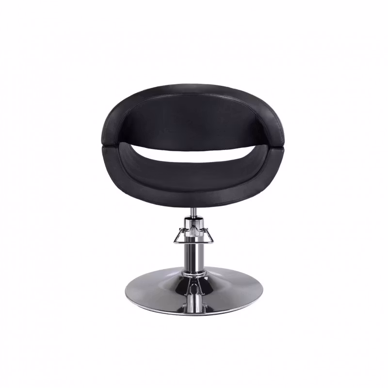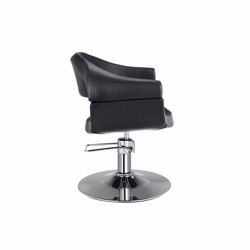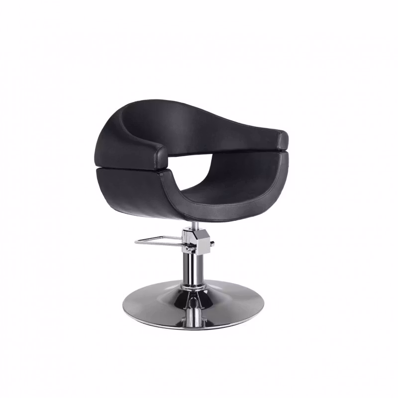 Prisvärd salongstylingstol. Klädd i högkvalitativ brandskyddande PVC-vinyl. Tillverkad i skum med hög densitet för snabb återhämtning. Injicerad PU med metall inre struktur. Ø50 bas i krommetall. Låsande hydraulpump.