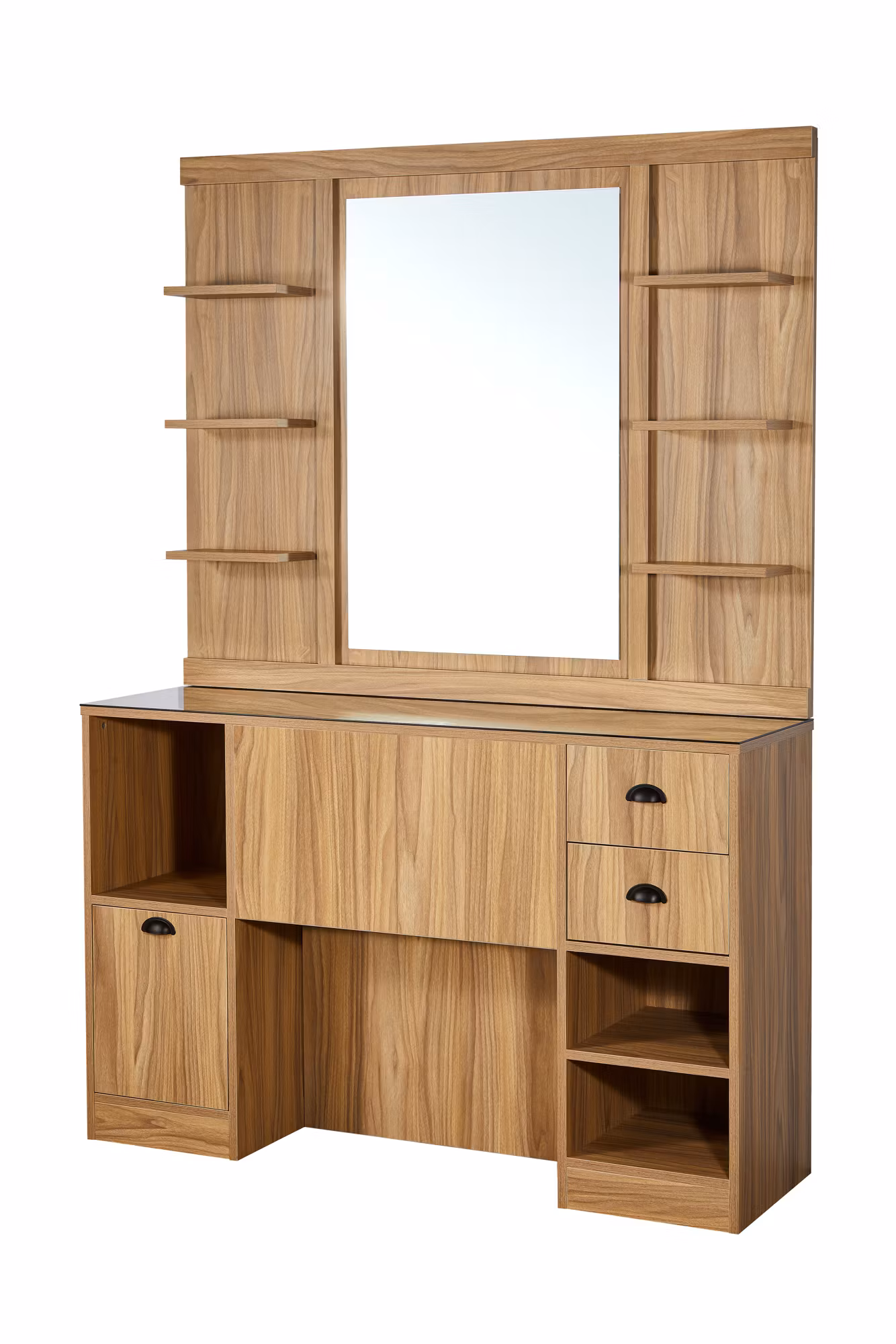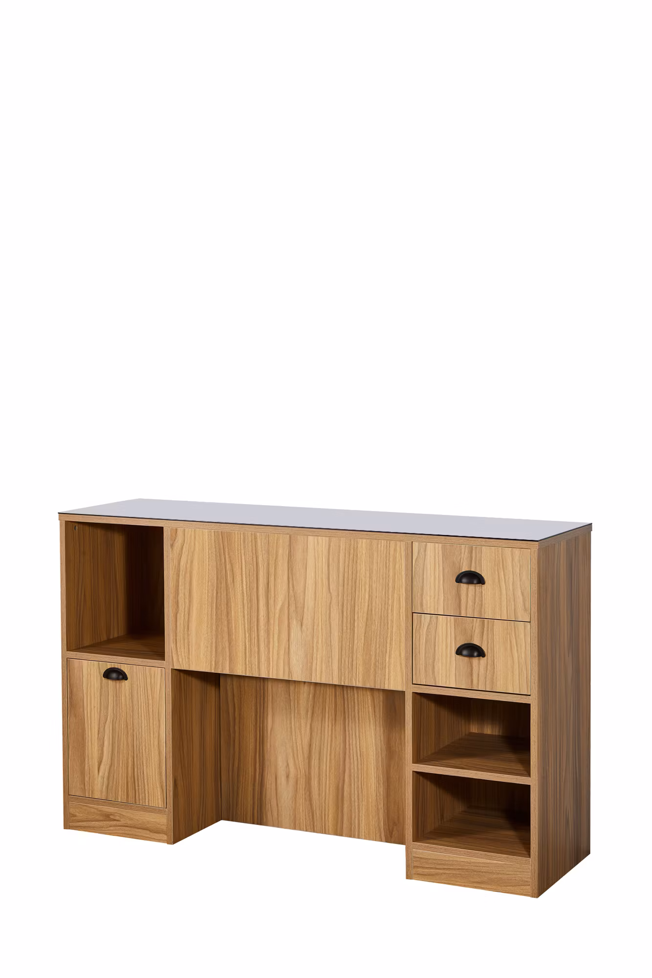 Modulär frisörstylingenhet i mörk eller ljus trämelamin som låter dig bygga en skräddarsydd arbetsyta.