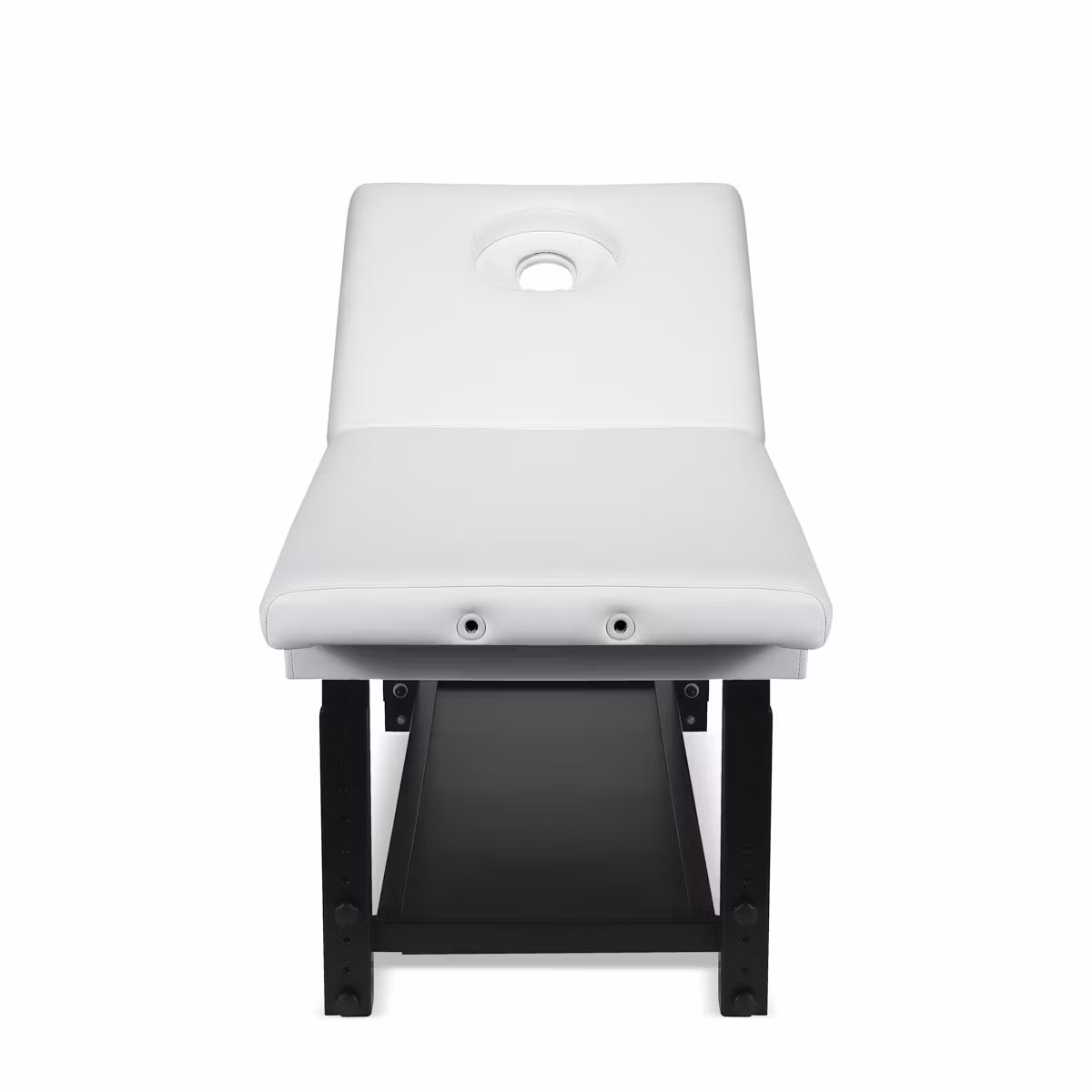 Justerbar i höjd. Ryggstödets lutning regleras manuellt. Nedre hylla för förvaring.