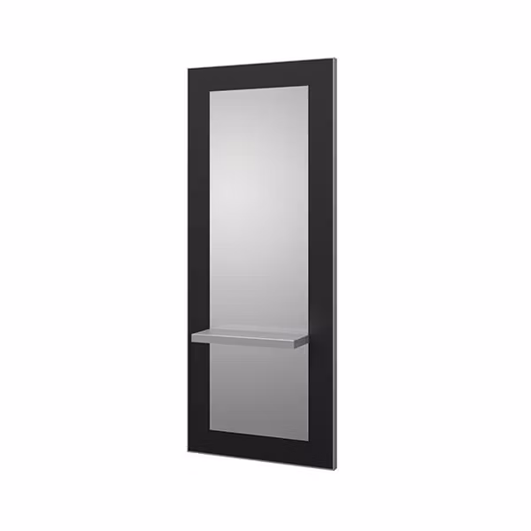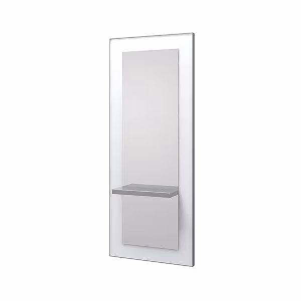 Högkvalitativ frisörfåfänga. Tillverkad av högdensitetsspånskiva med vit melaminbeläggning på båda sidor. Silverspegel med polerad kant. Rostfritt stål omkrets matt polerad yta. Hylla i rostfri plåt med mattpolerad yta. Enhetsförpackning i kartong. Krokar att fästa på väggen.